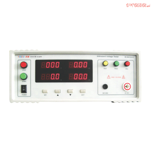 程控耐壓測試儀 MN0205D 功能特點(diǎn):1、符合《GB4706》《IEC60335》家用和類似用途電器的安全 2、符合《GB7000》《IEC60598》燈具一般安全要求與試驗(yàn) 3、符合《GB4943》《IEC60950》信息技術(shù)設(shè)備安全 4、符合新規(guī)程耐壓儀檢定規(guī)程的要求 5、無觸點(diǎn)升壓,,50/60Hz雙頻輸出,滿足國內(nèi)、出口產(chǎn)品的測試要求 6、國內(nèi)首創(chuàng)LPA(線性)技術(shù),輸出波形純凈,綠色環(huán)保 7、國內(nèi)首創(chuàng)2%測試精度 8、體積國內(nèi)最小,操作簡單易懂 9、可選配示波器接口,實(shí)時偵測閃絡(luò),,拉弧現(xiàn)象 10、可選配RS-232、RS-485、遙控等接口,實(shí)現(xiàn)測試網(wǎng)絡(luò)化 11、可選配計(jì)算機(jī)軟件,便于數(shù)據(jù)存儲、分析、打印、查詢等操作 程控耐壓測試儀 MN0205D 技術(shù)參數(shù):