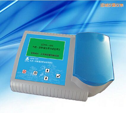應(yīng)用領(lǐng)域 適用于牛奶、奶粉、牛初乳及牛初乳粉中蛋白質(zhì)的快速定量測定。 儀器特點 ● 檢測速度:包括樣品前處理在內(nèi),檢測每個樣品只需5~10分鐘。 ● 抗干擾能力:該儀器測定樣品中蛋白質(zhì)氮,,真實反應(yīng)樣品中蛋白質(zhì)的含量,不受三聚氰胺、尿素、硝酸銨及甘氨酸等非蛋白氮的干擾。 ● 操作方式:被測樣品采用流通引入方式,取代傳統(tǒng)的樣品池,方便用戶操作、清洗及維護;克服了傳統(tǒng)凱氏定氮法樣品前處理系統(tǒng)繁瑣,,操作步驟繁雜等缺點,避免了傳統(tǒng)方法需向樣品中加入濃硫酸,高溫消化等危險性步驟。 ● 數(shù)據(jù)存儲:數(shù)據(jù)存儲量大,,存儲容量大于2000條檢測數(shù)據(jù)。 ● 單機軟件:單機具有數(shù)據(jù)處理、結(jié)果統(tǒng)計等功能。 ● 數(shù)據(jù)接口:外設(shè)USB、RS232接口。 ● 耗材配件:提供完備的專用前處理設(shè)備和耗材,一站式服務(wù)。 技術(shù)指標 ● 光源: 超高亮發(fā)光二極管 ● 測定下限: 0.50%(牛奶) 5.00%(奶粉) ● 測定范圍: 0.50 %~4.00%(牛奶) 5.00%~40.00%(奶粉) 4.00%~10.00% (牛初乳) 40.00%~80.00%(牛初乳粉) ● 精 密 度: 2 % ● 電源: AC 220V±22V,50Hz±1 Hz ● 尺寸:275x210x130 mm ● 重量:1.7 kg 儀器配置 * 樣品前處理設(shè)備1套 * 微機接口和數(shù)據(jù)處理軟件1套 * 外置打印機 * 試劑1套(50次)