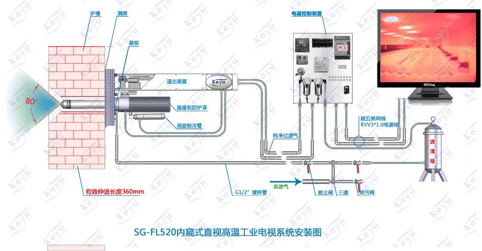 采用自動光圈的高溫針孔鏡頭,提高鏡頭對爐內(nèi)照度變化下的敏感度;鏡頭端面采用藍寶石制成,能耐600℃高溫,即使在意外情況下,也不致于燒壞鏡頭。