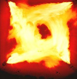 加熱鍋爐爐內(nèi)高溫智能監(jiān)視工業(yè)電視系統(tǒng)是采用微氣量保護方式, 集視頻技術(shù)、機電控制技術(shù)及傳感技術(shù)為一體的特種閉路電視設(shè)備,廣泛應(yīng)用于冶金、石化、水泥、玻璃、電力等行業(yè)。主要安裝于鍋爐側(cè)處,攝像鏡頭直接伸入爐內(nèi),在集控室連續(xù)實時地監(jiān)視爐內(nèi)火焰的工作狀態(tài),可清晰地觀察到爐膛四角位置分布的燃燒噴火嘴及每個噴頭嘴噴火形狀,對于爐內(nèi)油嘴霧化不良,漏油造成噴火不暢,火焰變小以及火嘴配風(fēng)不好引起火焰過長而出現(xiàn)舔管現(xiàn)象,爐內(nèi)爐管變形,燒結(jié)而爆管的事故都能實時監(jiān)視并報警,提示用戶及時處理故障,防止?fàn)t內(nèi)事故發(fā)生,確保了鍋爐爐膛經(jīng)濟運行的可靠性,還便于實現(xiàn)集中調(diào)度及生產(chǎn)過程的自動化。系統(tǒng)采用PLC可編程控制與通訊,具有停電、停氣、超溫自動退出保護功能。加熱爐爐內(nèi)監(jiān)控畫面
